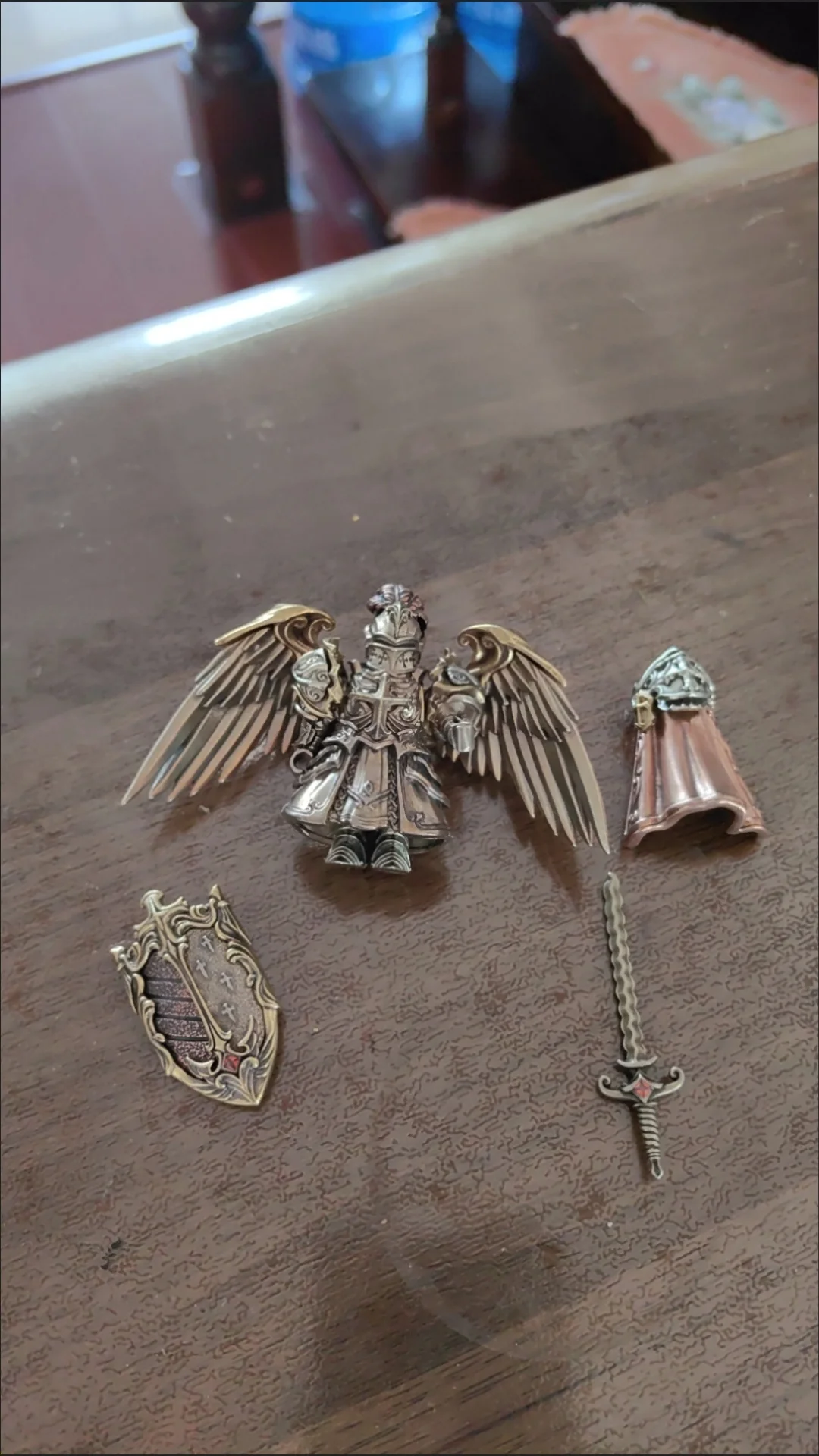 Paladin Figurine with Magnetic Detachable Ornaments - Elegant Crusader Desktop Decor and Copper Pendant Gift Souvenir
